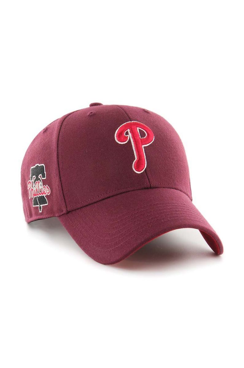 Бавовняна бейсболка 47brand MLB Philadelphia Phillies колір бордовий з аплікацією Один розмір