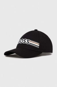 Бавовняна бейсболка BOSS колір чорний з принтом