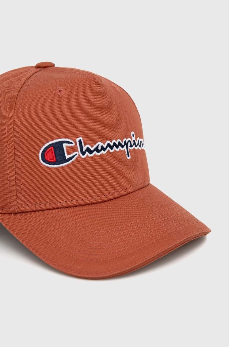Бавовняна бейсболка Champion колір коричневий з аплікацією
