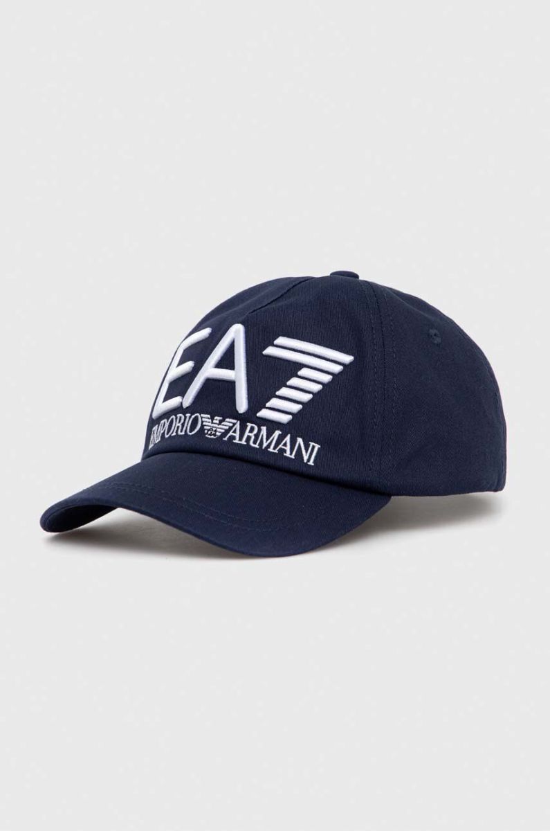 Бавовняна бейсболка EA7 Emporio Armani колір синій з аплікацією
