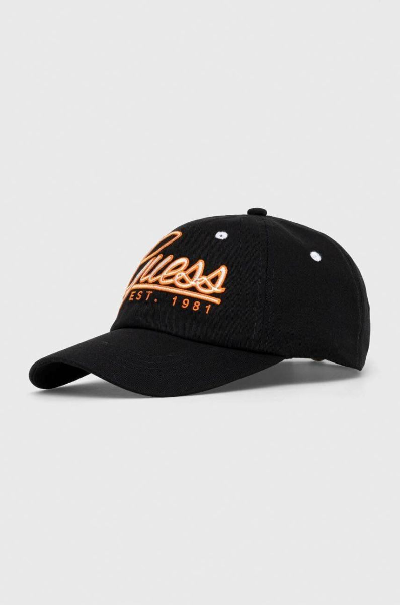 Бавовняна бейсболка Guess колір чорний візерунок Один розмір