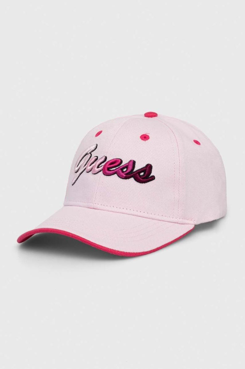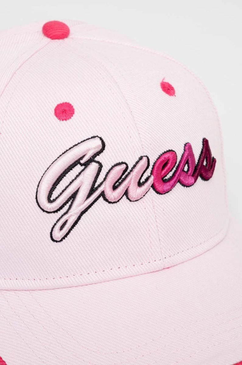 Бавовняна бейсболка Guess колір рожевий з аплікацією (3296586) Один розмір