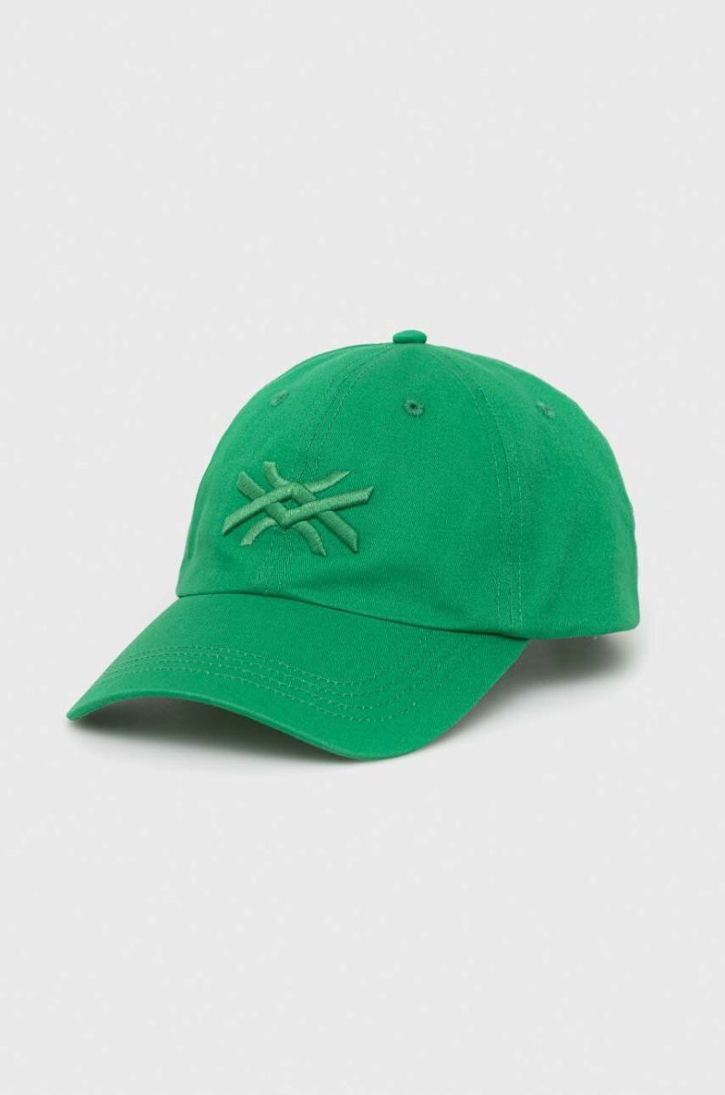 Бавовняна бейсболка United Colors of Benetton колір зелений однотонна Один розмір