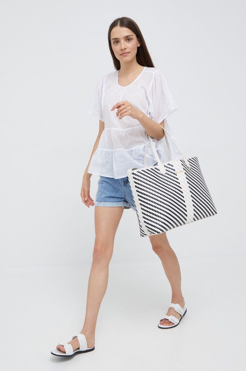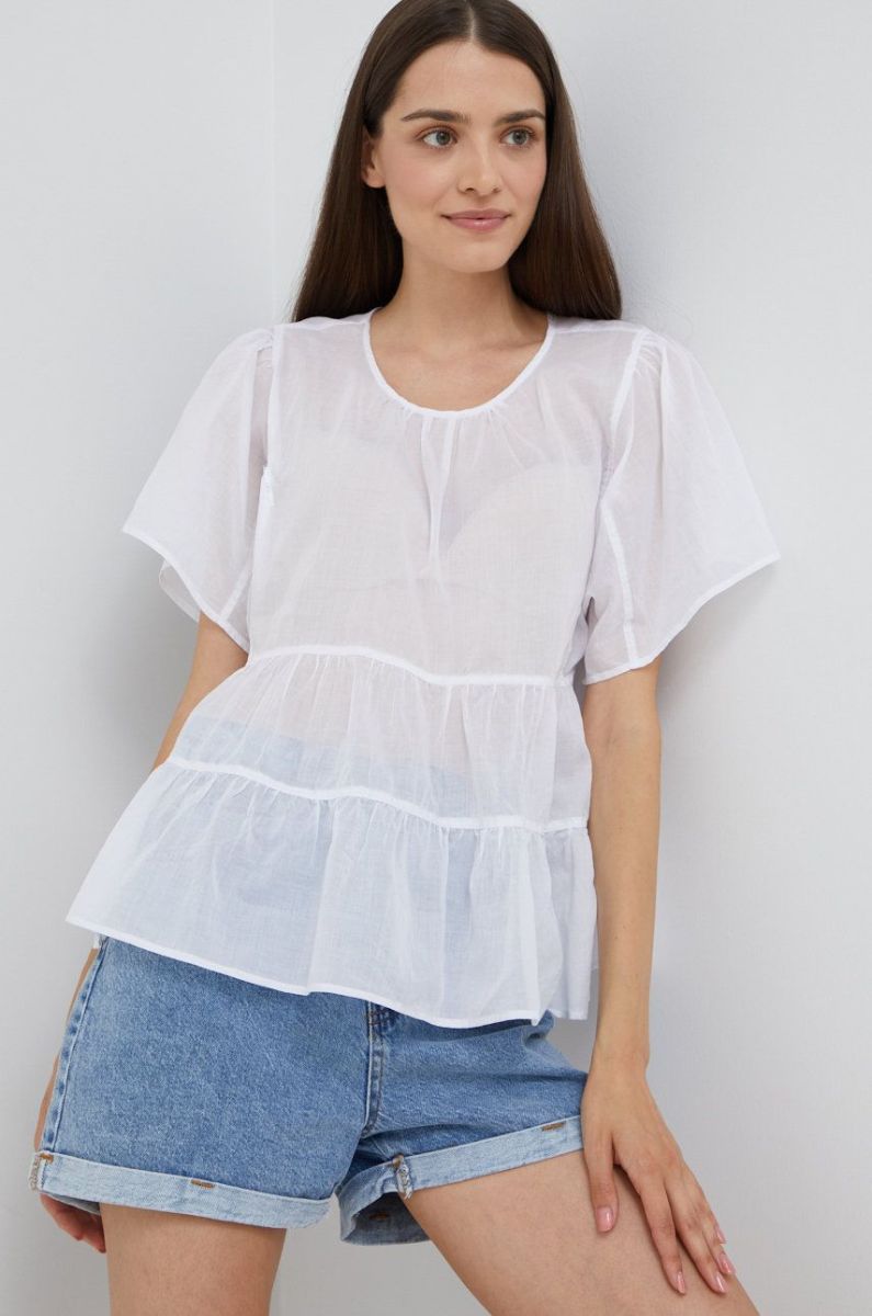 Бавовняна блузка Sisley жіноча колір білий однотонна