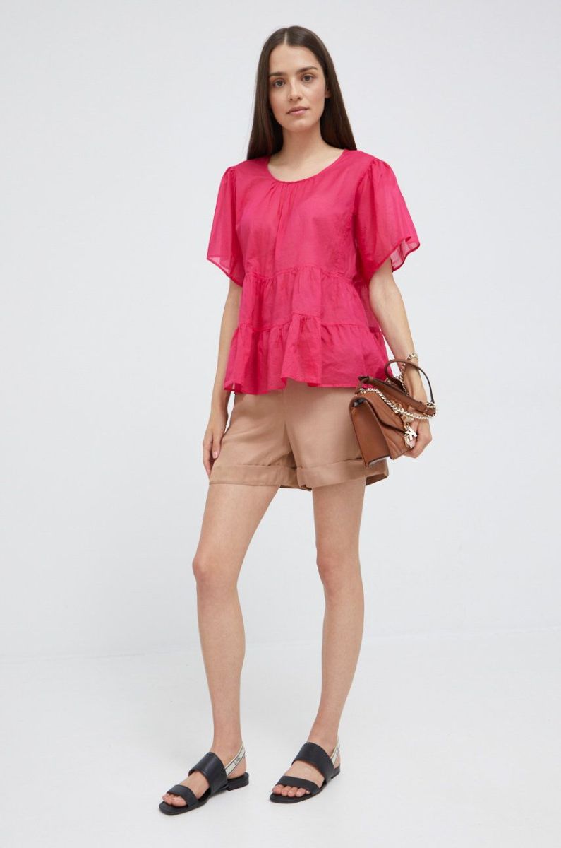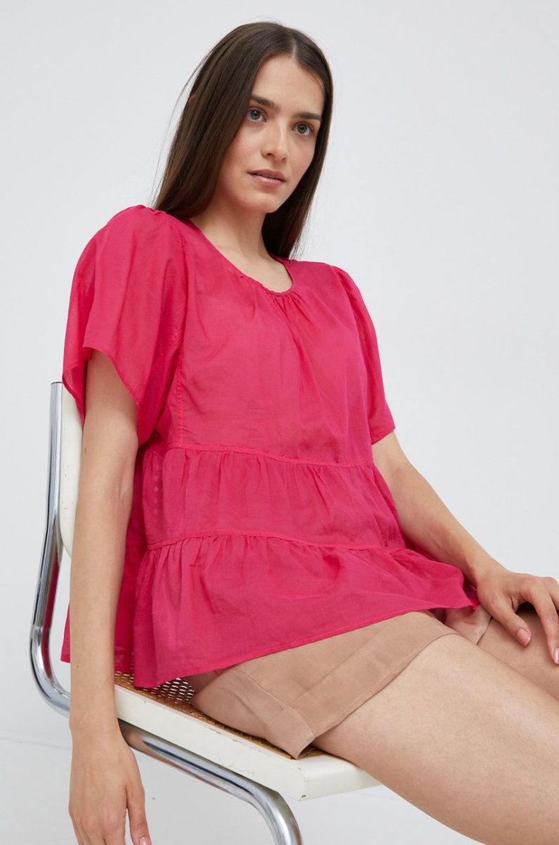 Бавовняна блузка Sisley жіноча колір рожевий однотонна
