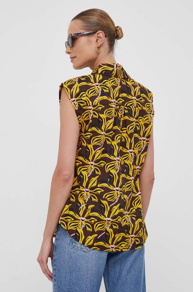 Бавовняна блузка United Colors of Benetton жіноча колір жовтий візерунок