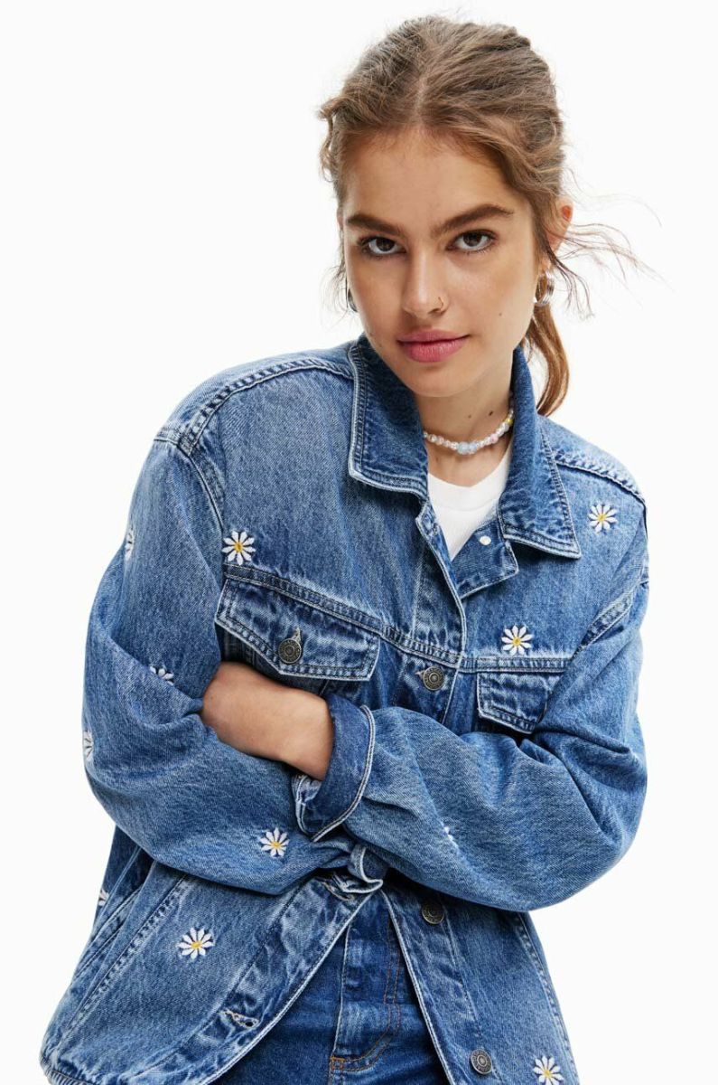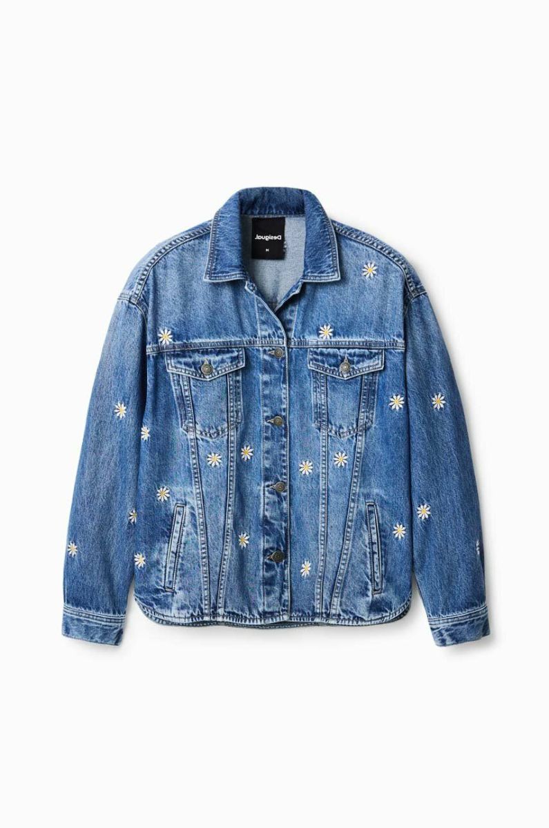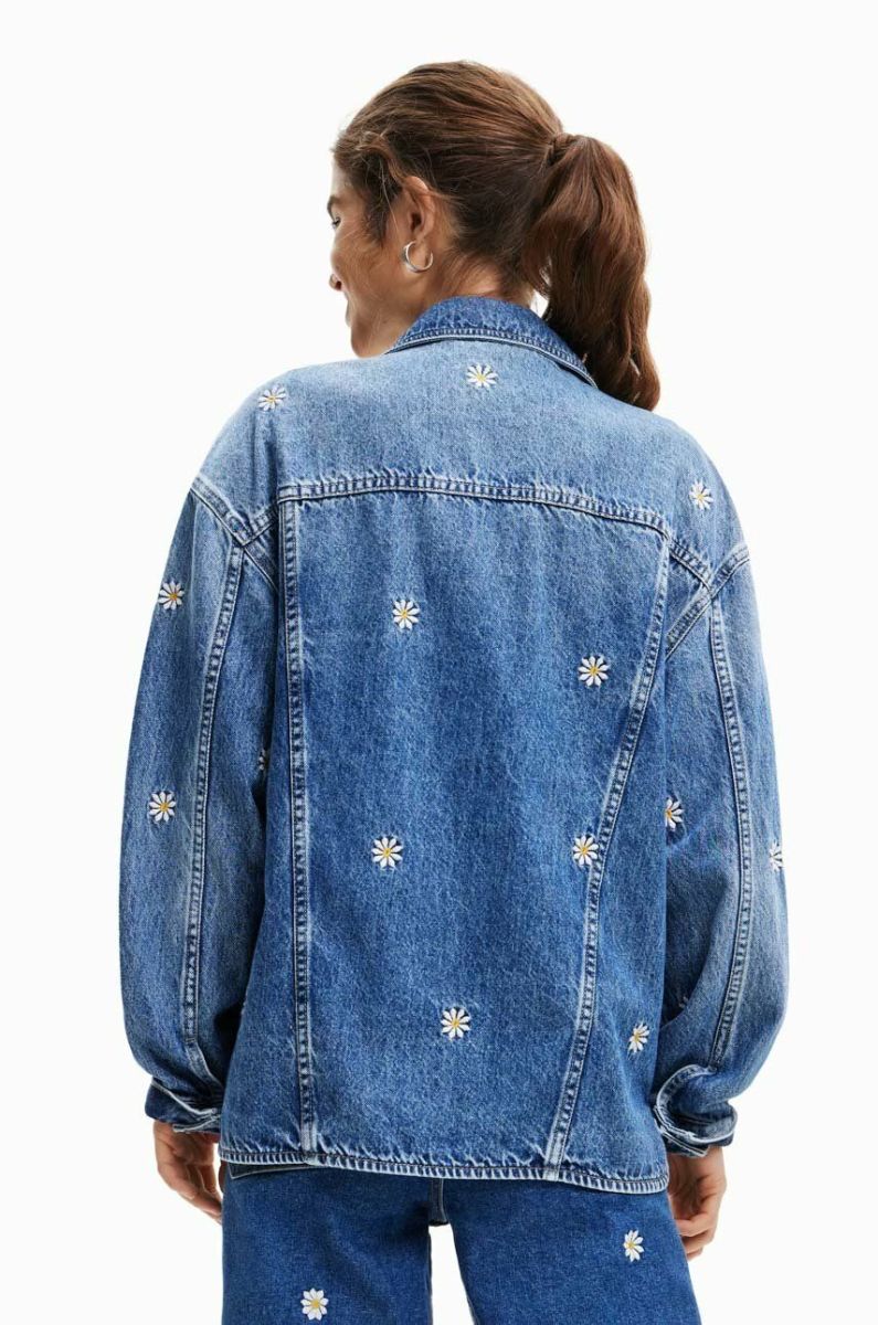 Бавовняна джинсова куртка Desigual перехідна oversize колір блакитний