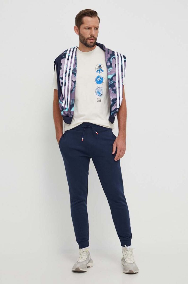 Бавовняна футболка adidas чоловічий колір бежевий з принтом