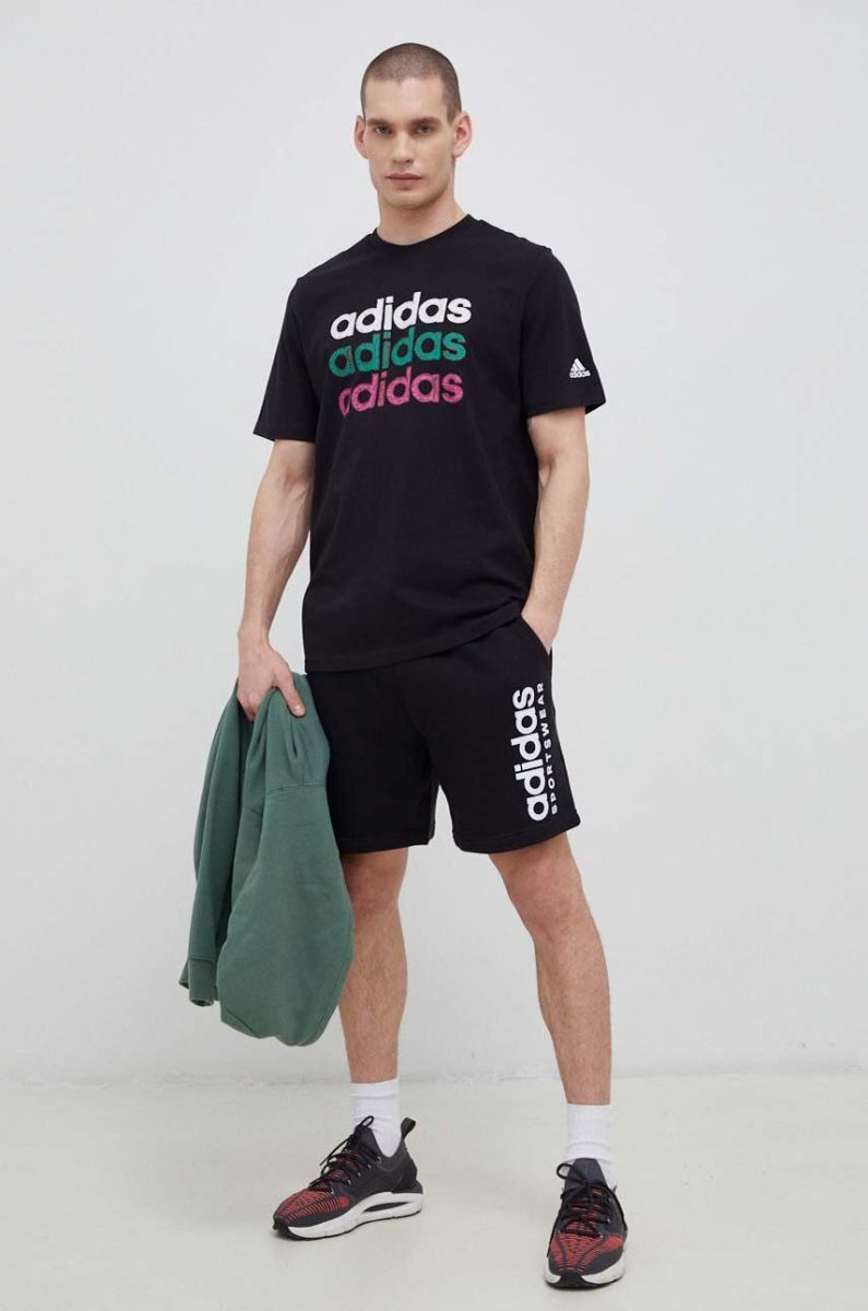 Бавовняна футболка adidas колір чорний візерунок (3079322)