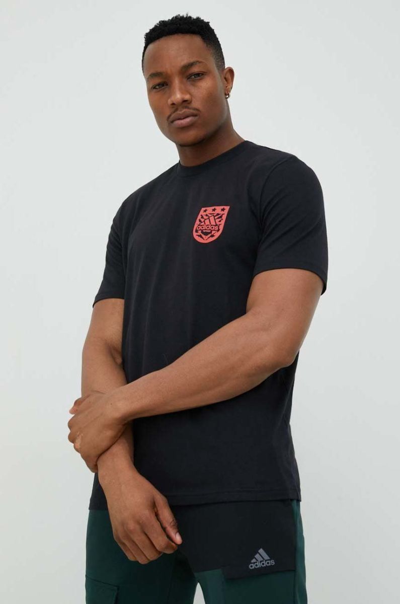 Бавовняна футболка adidas колір чорний з принтом (2957877)