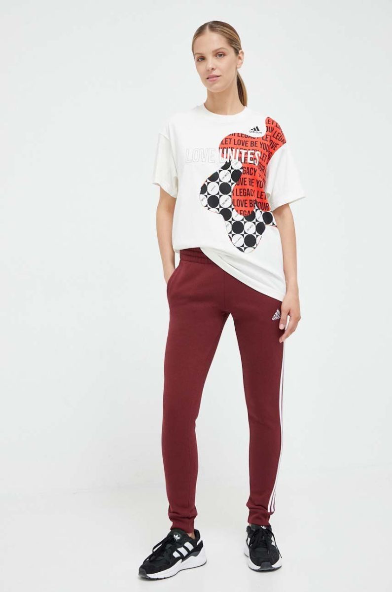 Бавовняна футболка adidas PRIDE колір бежевий з принтом