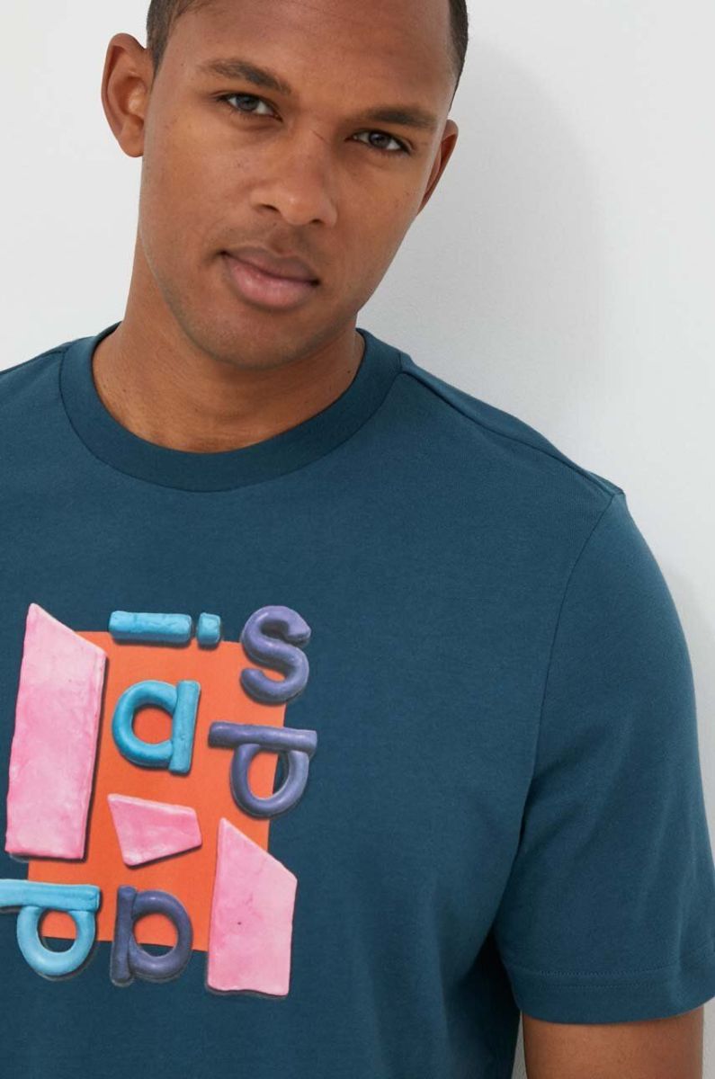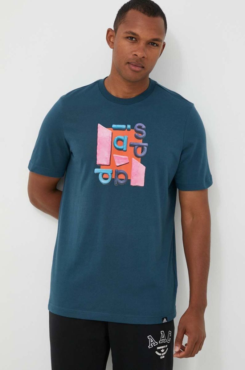 Бавовняна футболка adidas з принтом колір блакитний (3388945)