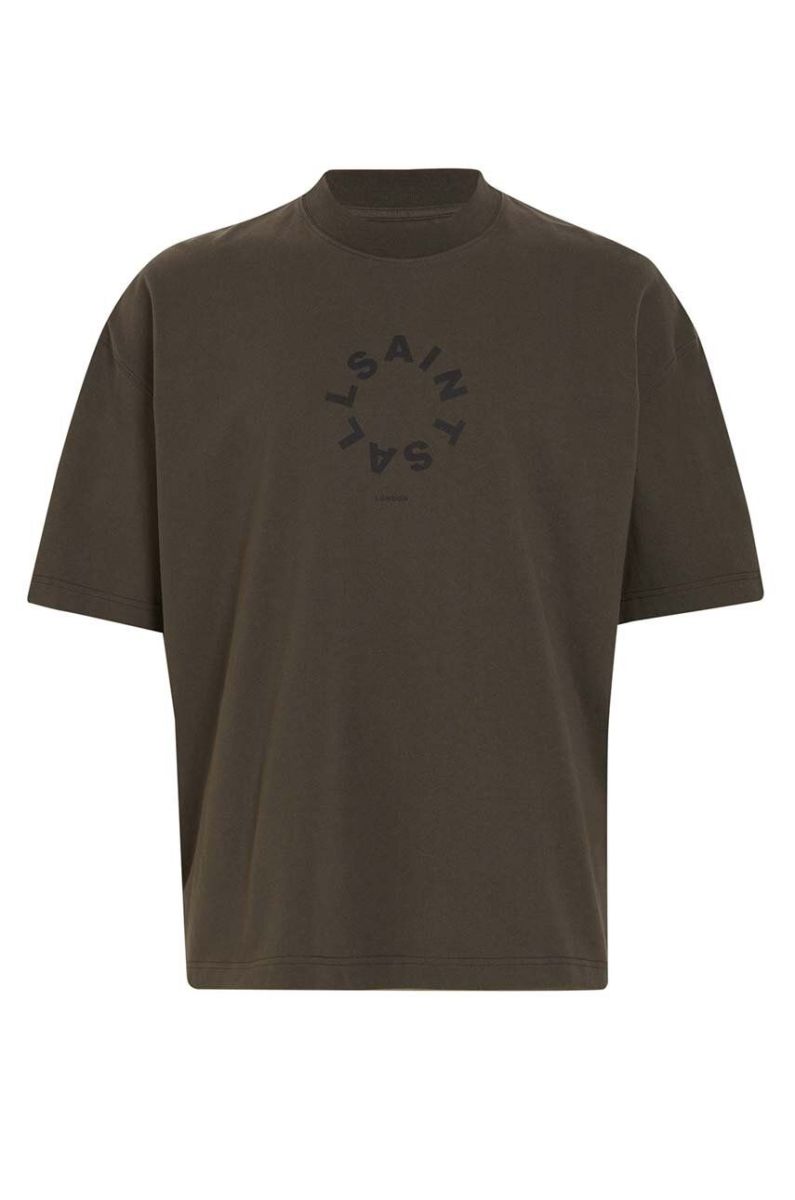 Бавовняна футболка AllSaints TIERRA SS CREW колір зелений з принтом