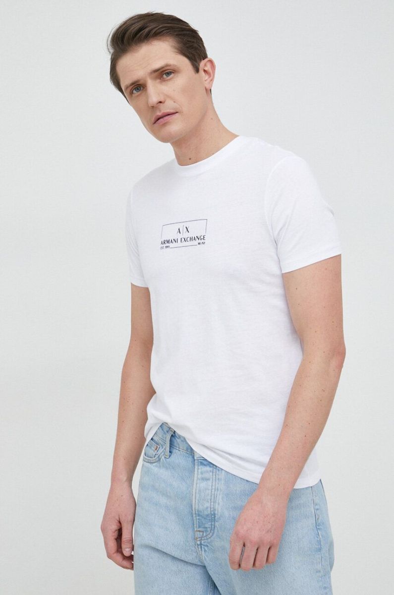 Бавовняна футболка Armani Exchange колір білий з принтом (3047421)