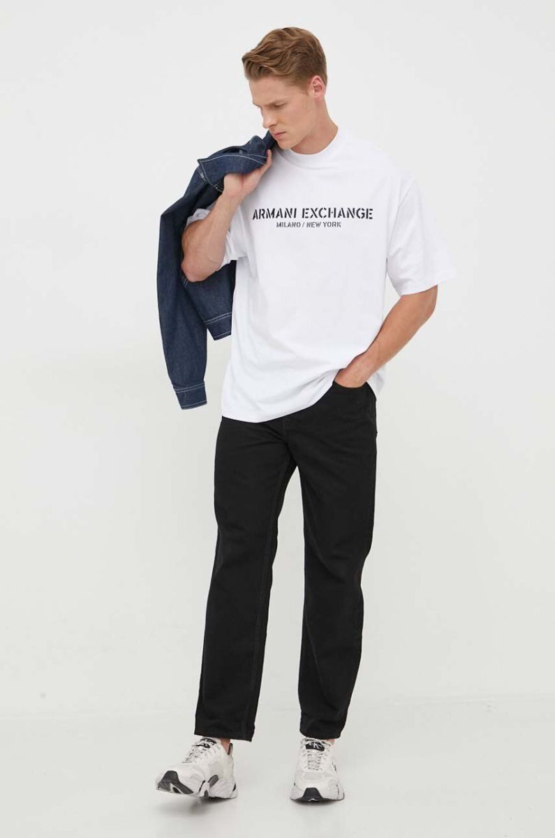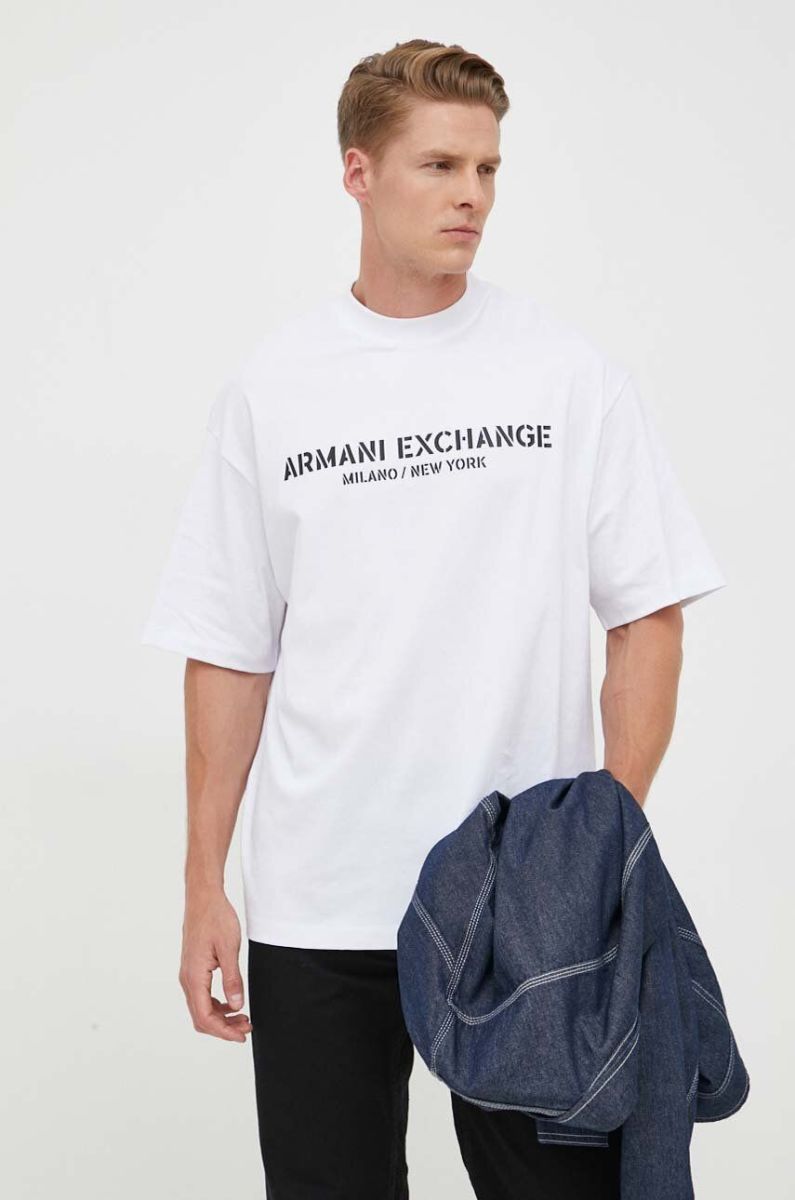 Бавовняна футболка Armani Exchange колір білий з принтом (3352250)