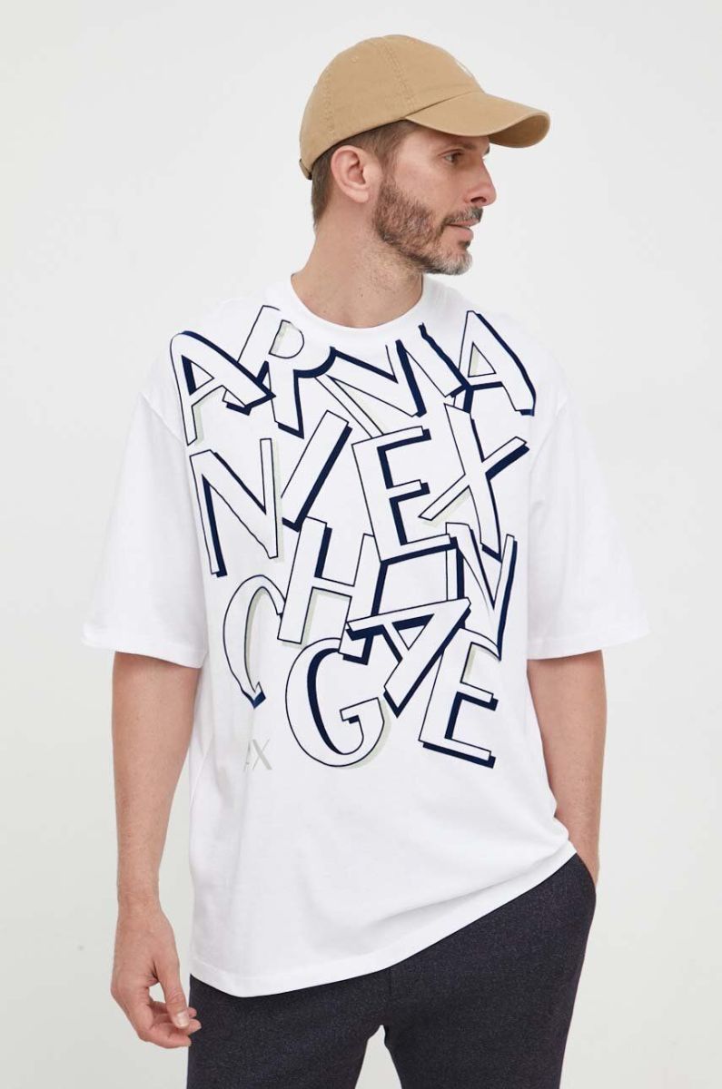 Бавовняна футболка Armani Exchange колір білий з принтом (3354759)