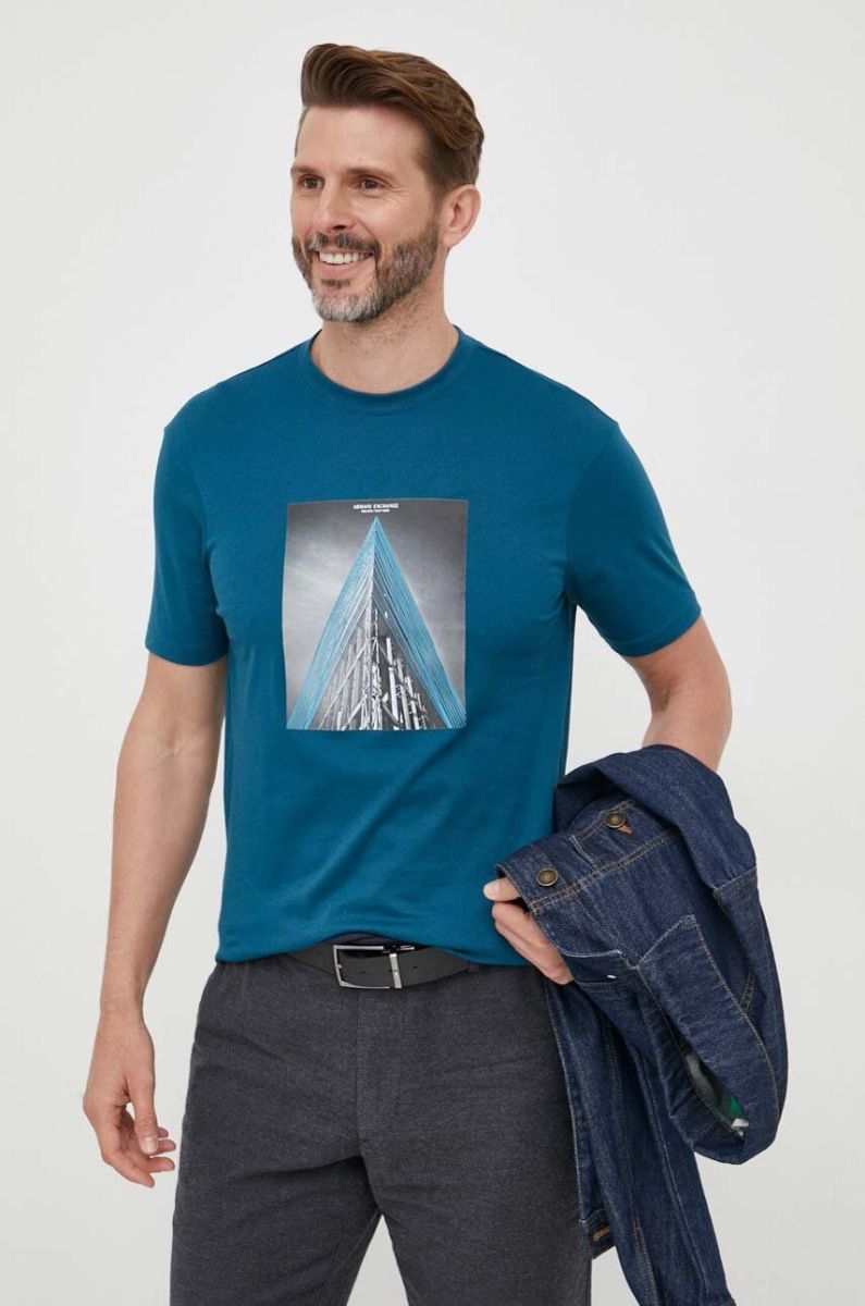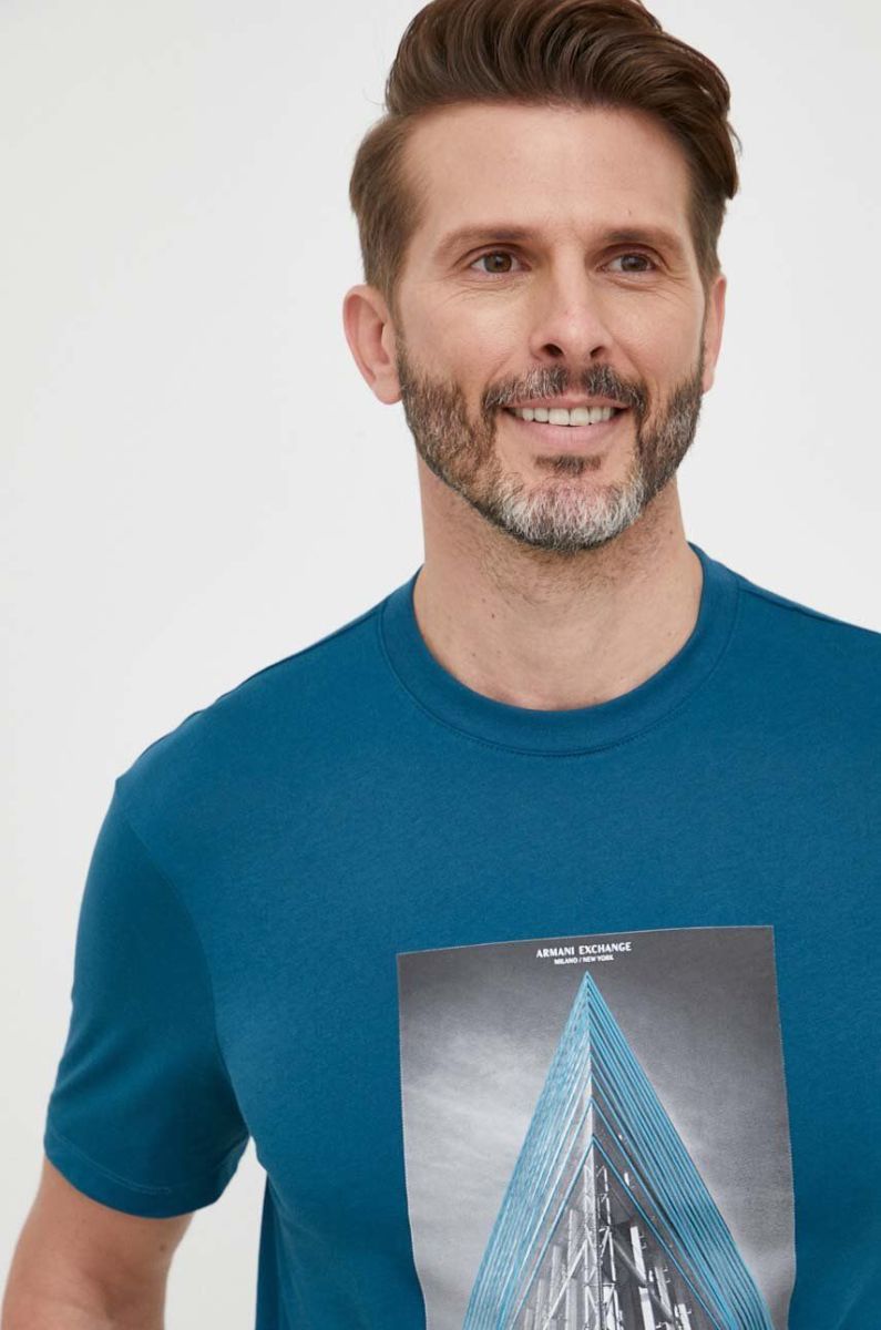Бавовняна футболка Armani Exchange колір бірюзовий з принтом