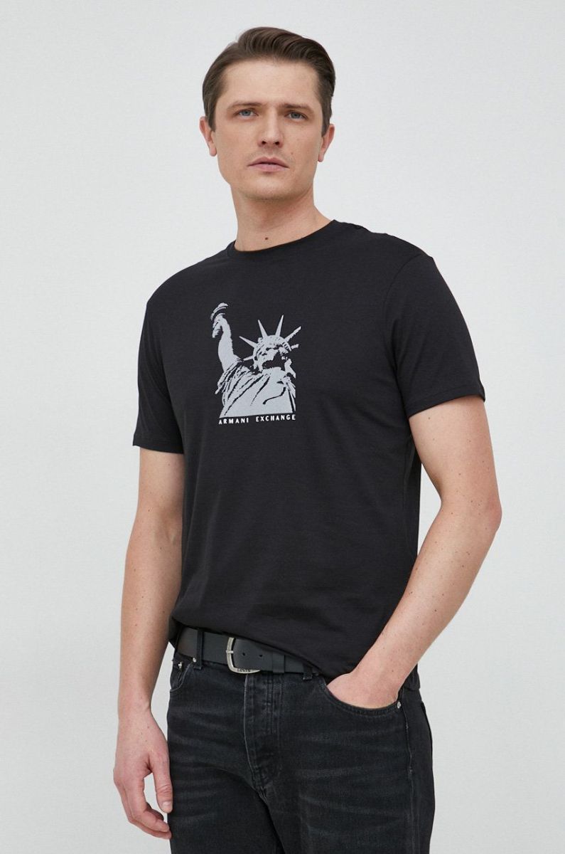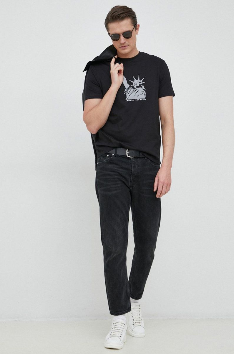 Бавовняна футболка Armani Exchange колір чорний візерунок (2949010)