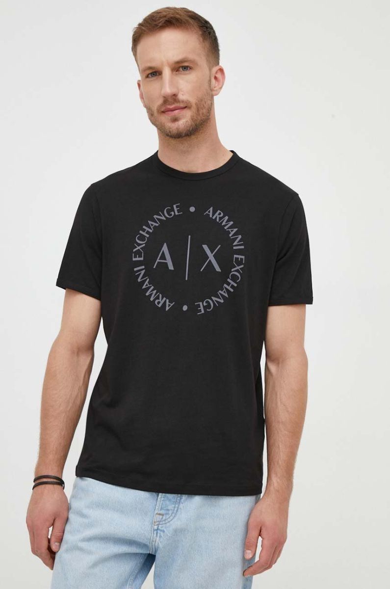 Бавовняна футболка Armani Exchange колір чорний з принтом (3387667)