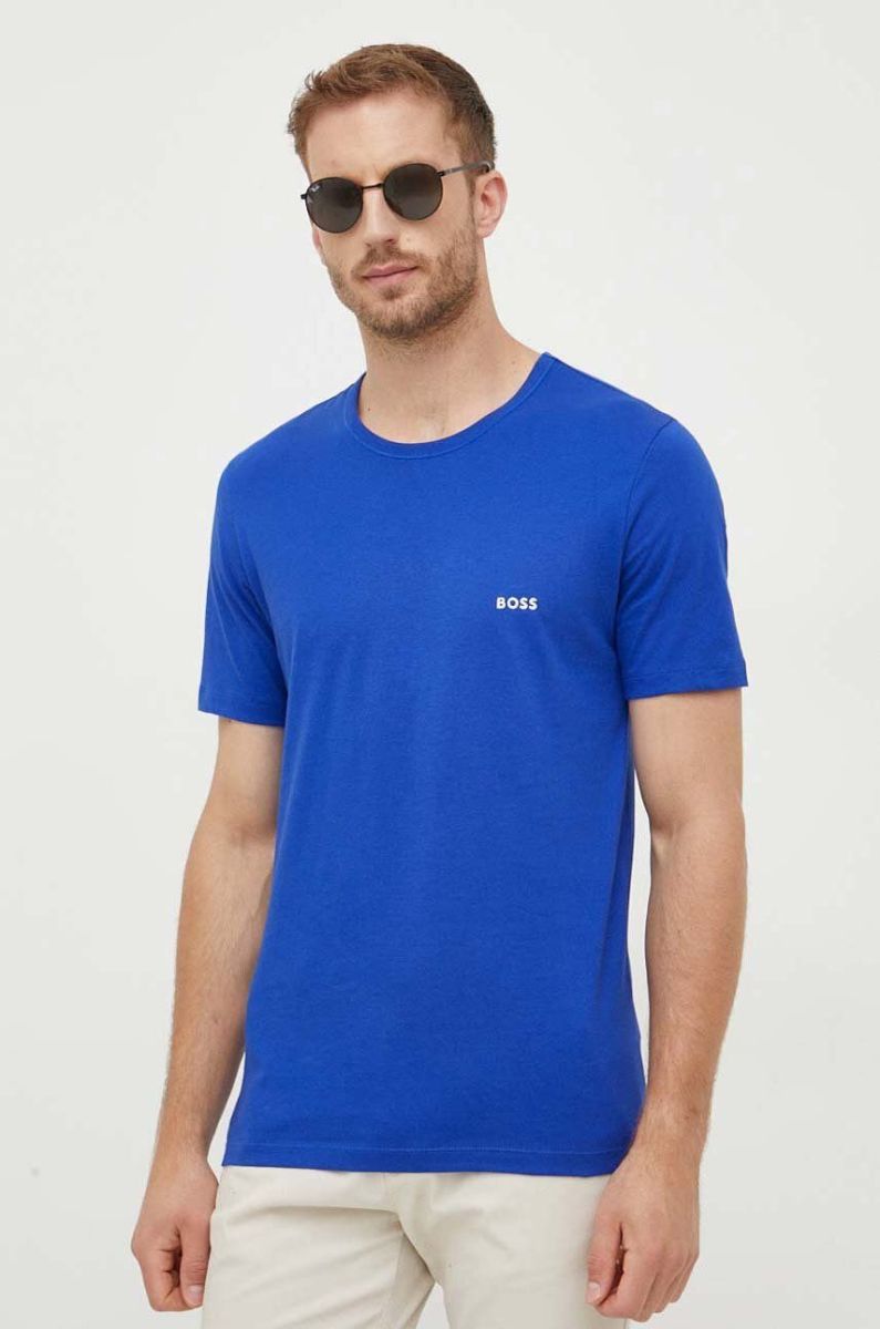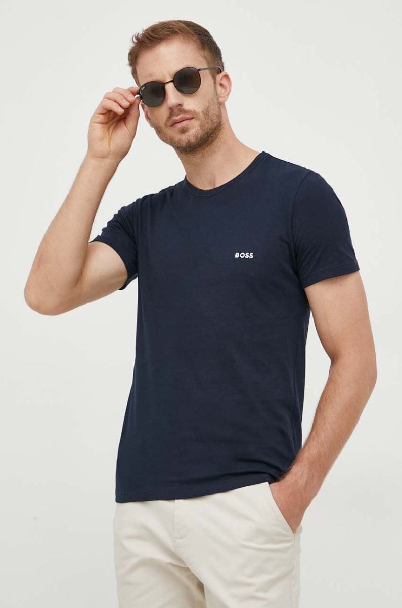Бавовняна футболка BOSS 3-pack колір синій однотонний