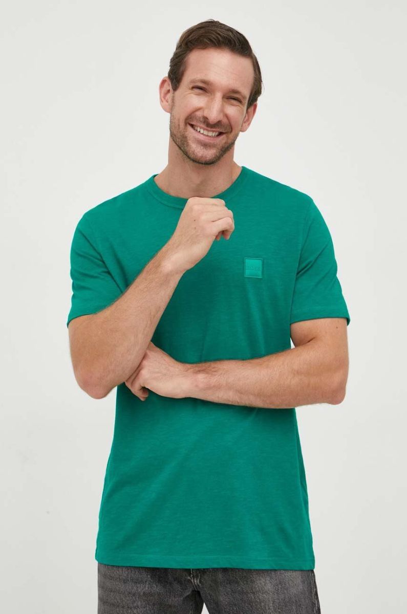 Бавовняна футболка BOSS BOSS CASUAL колір зелений з аплікацією