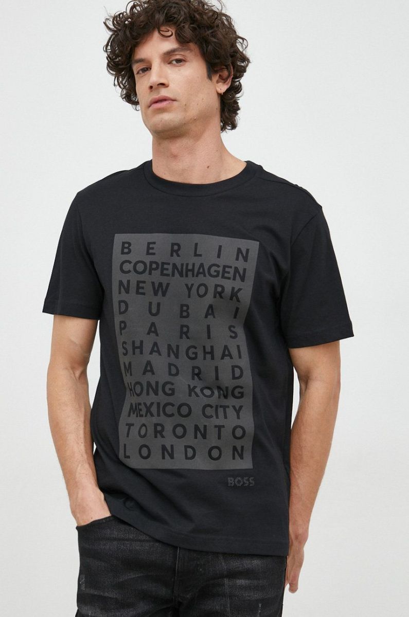 Бавовняна футболка BOSS BOSS GREEN колір чорний з принтом (2875901)