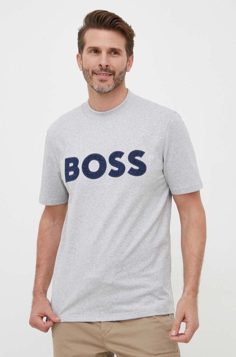 Бавовняна футболка BOSS BOSS ORANGE колір сірий з аплікацією