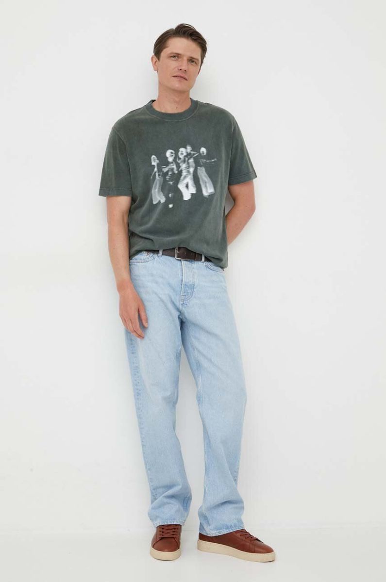 Бавовняна футболка BOSS BOSS ORANGE колір сірий з принтом (3308225)