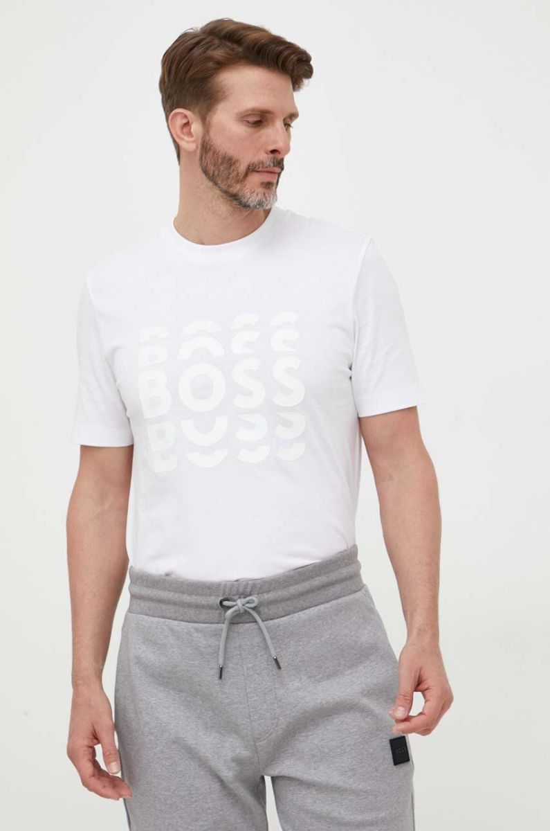 Бавовняна футболка BOSS колір білий з принтом (3354559)