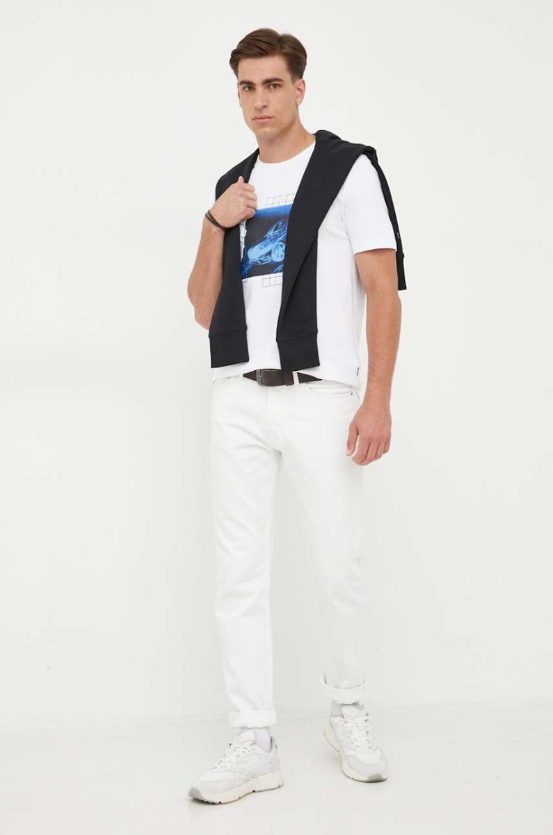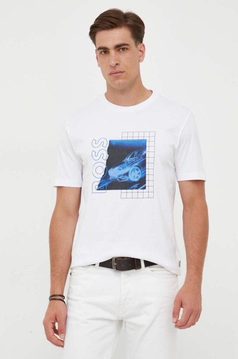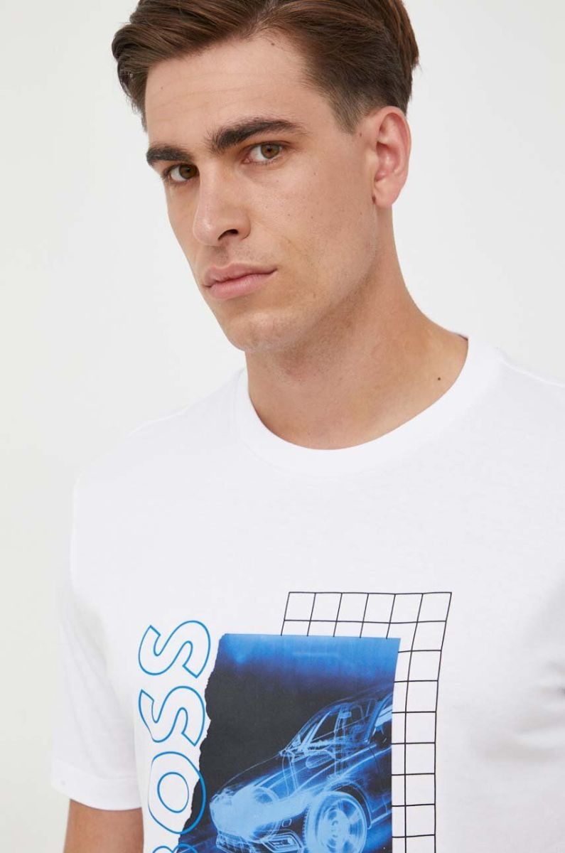 Бавовняна футболка BOSS колір білий з принтом (3417061)