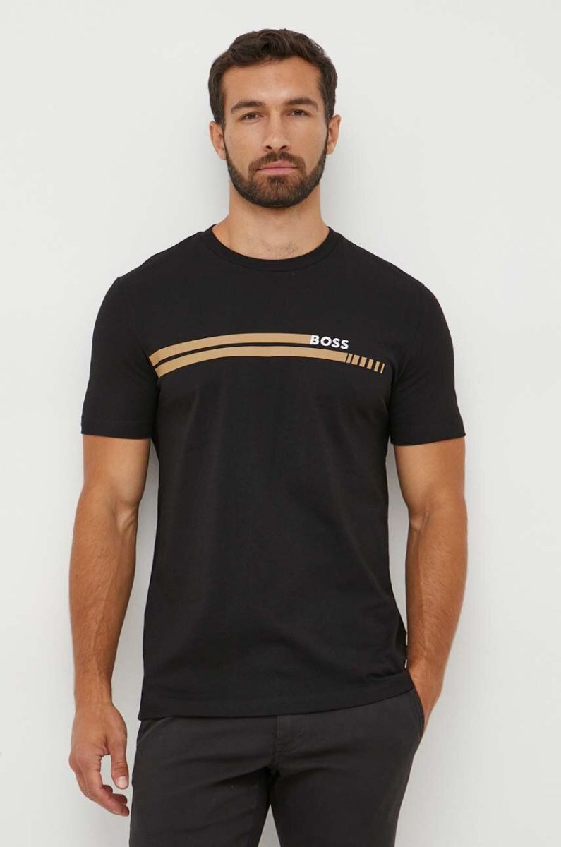 Бавовняна футболка BOSS колір чорний з принтом (3478510)