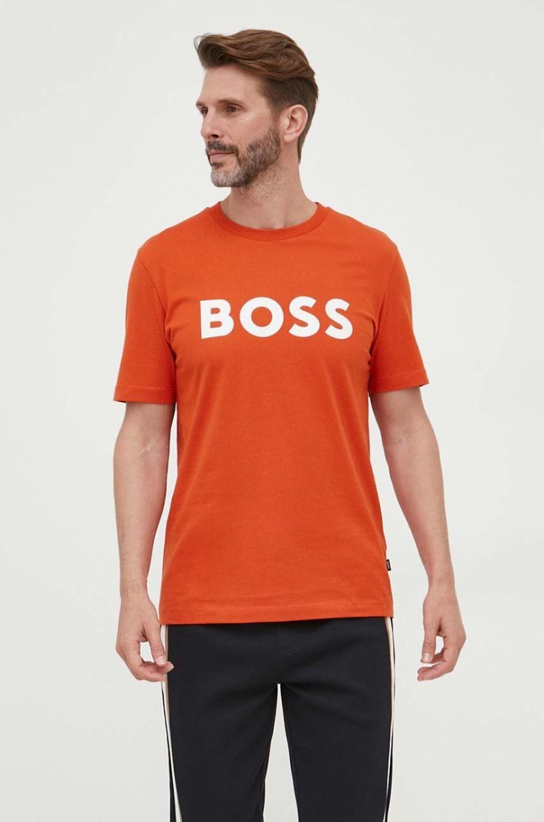Бавовняна футболка BOSS колір помаранчевий з принтом
