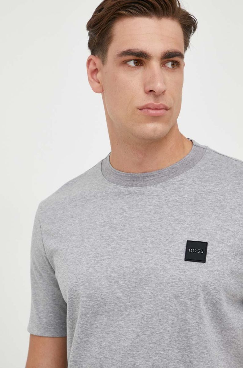 Бавовняна футболка BOSS колір сірий з аплікацією