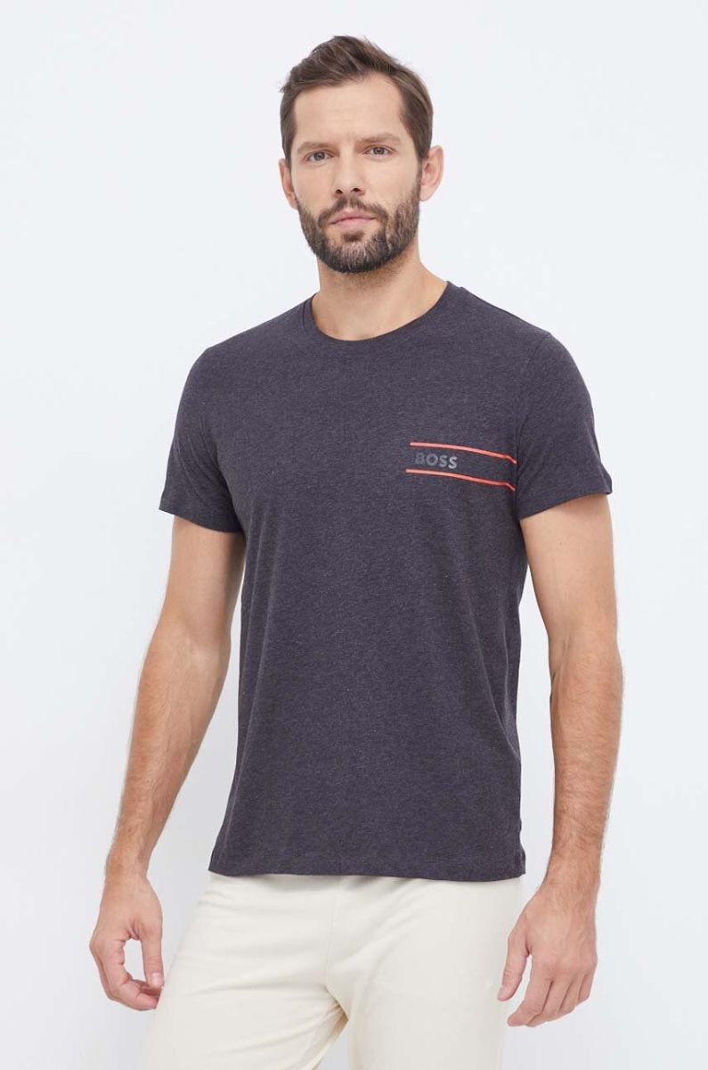 Бавовняна футболка BOSS колір сірий з принтом (3560463)