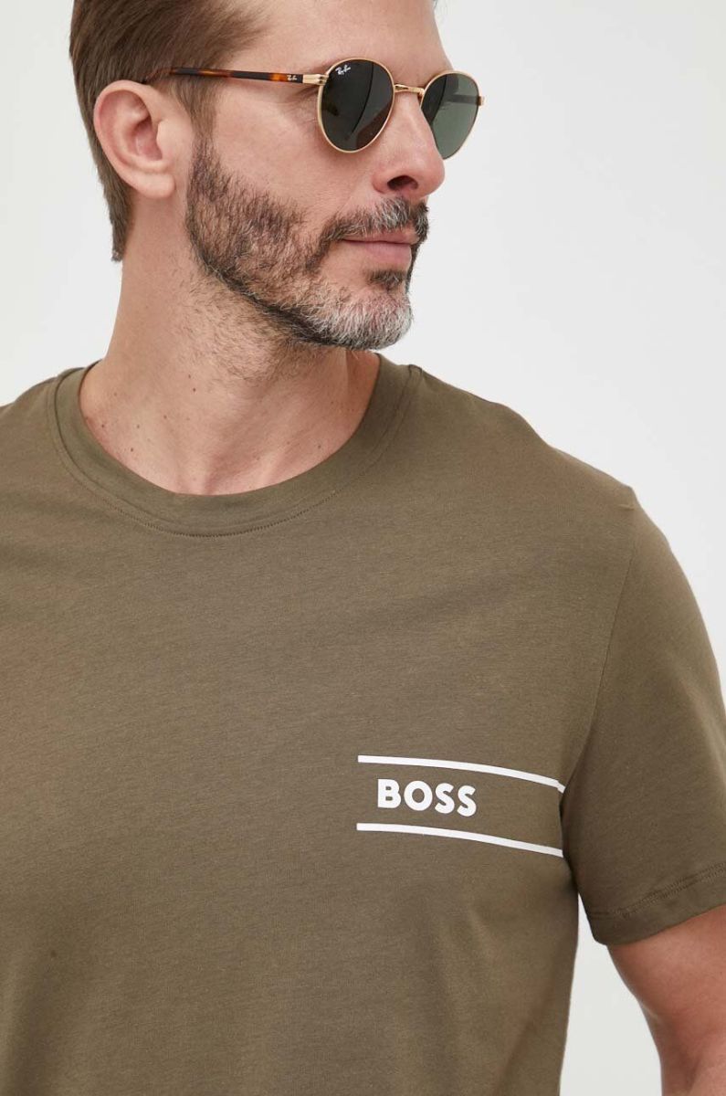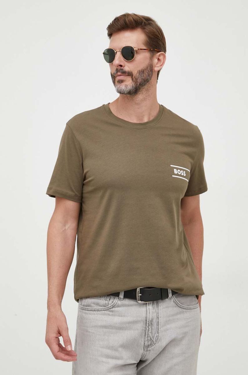 Бавовняна футболка BOSS колір зелений з принтом (3560473)
