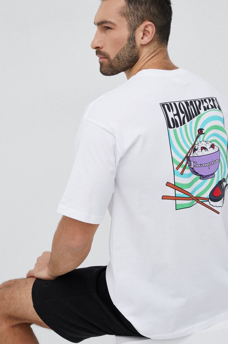 Бавовняна футболка Champion колір білий візерунок (3076221)