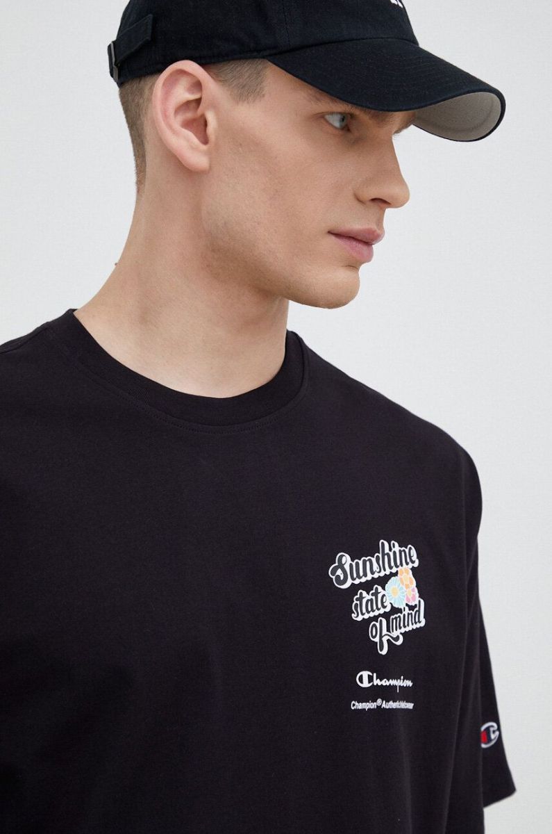 Бавовняна футболка Champion колір чорний візерунок (3072569)