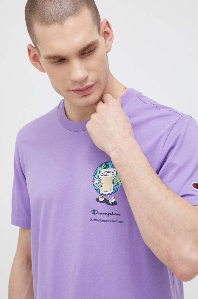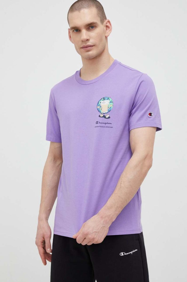 Бавовняна футболка Champion колір фіолетовий візерунок