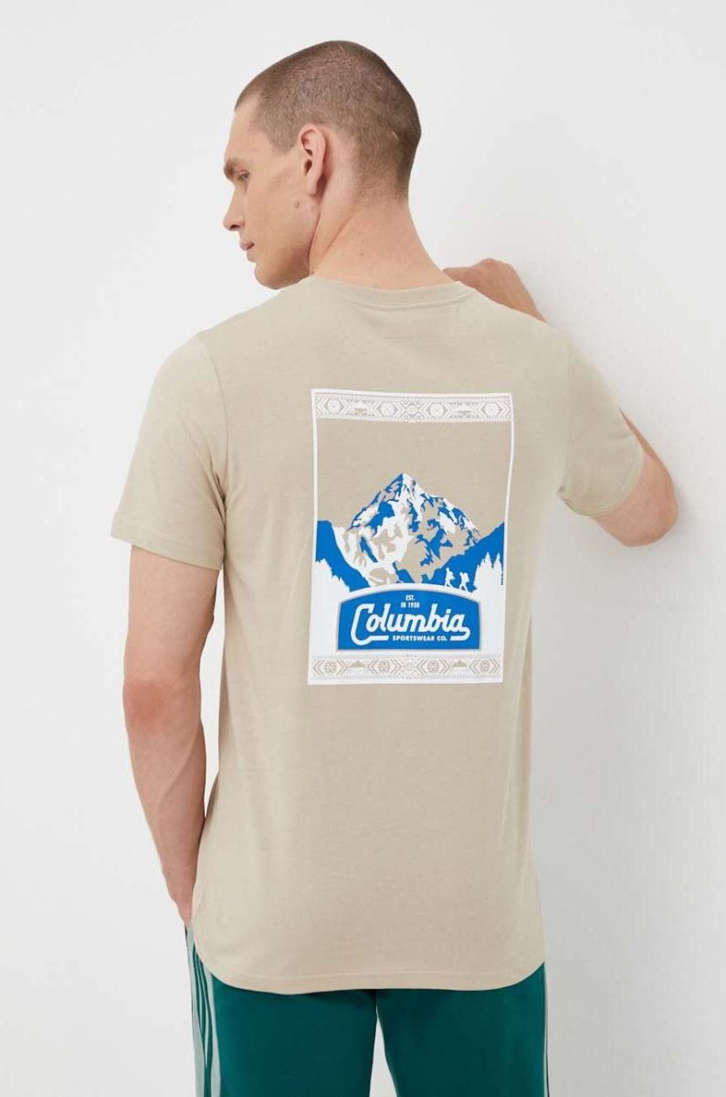 Бавовняна футболка Columbia колір бежевий з принтом (3520669)