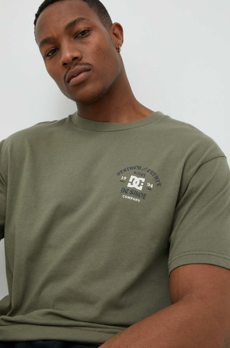 Бавовняна футболка DC колір зелений однотонний