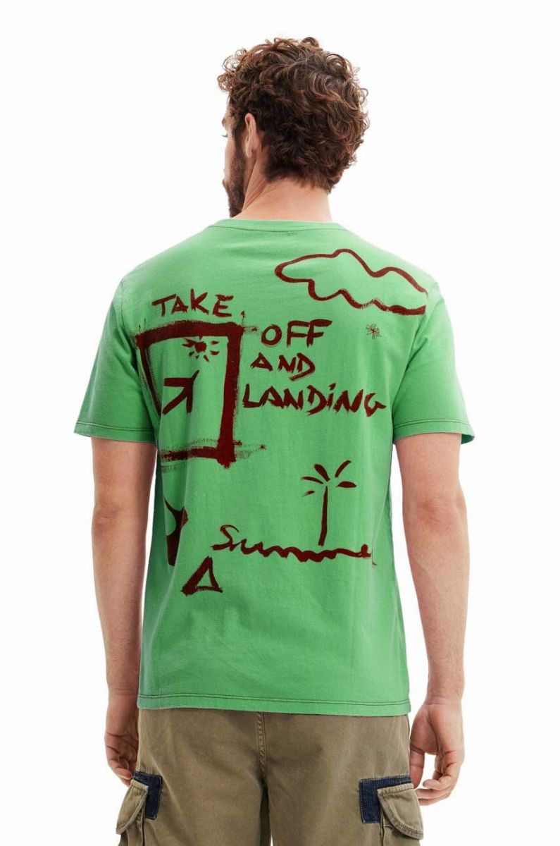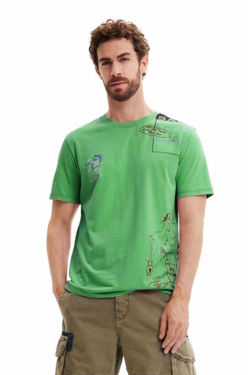 Бавовняна футболка Desigual чоловічий колір зелений візерунок