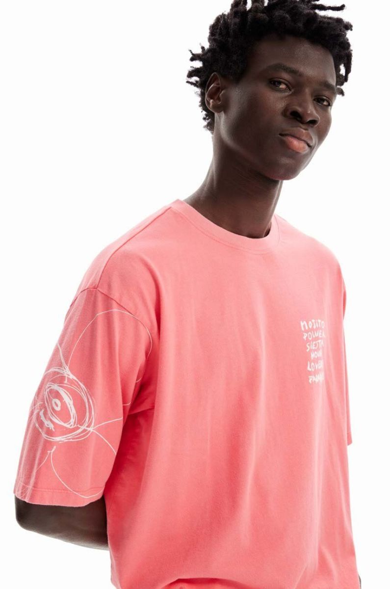 Бавовняна футболка Desigual колір помаранчевий з принтом