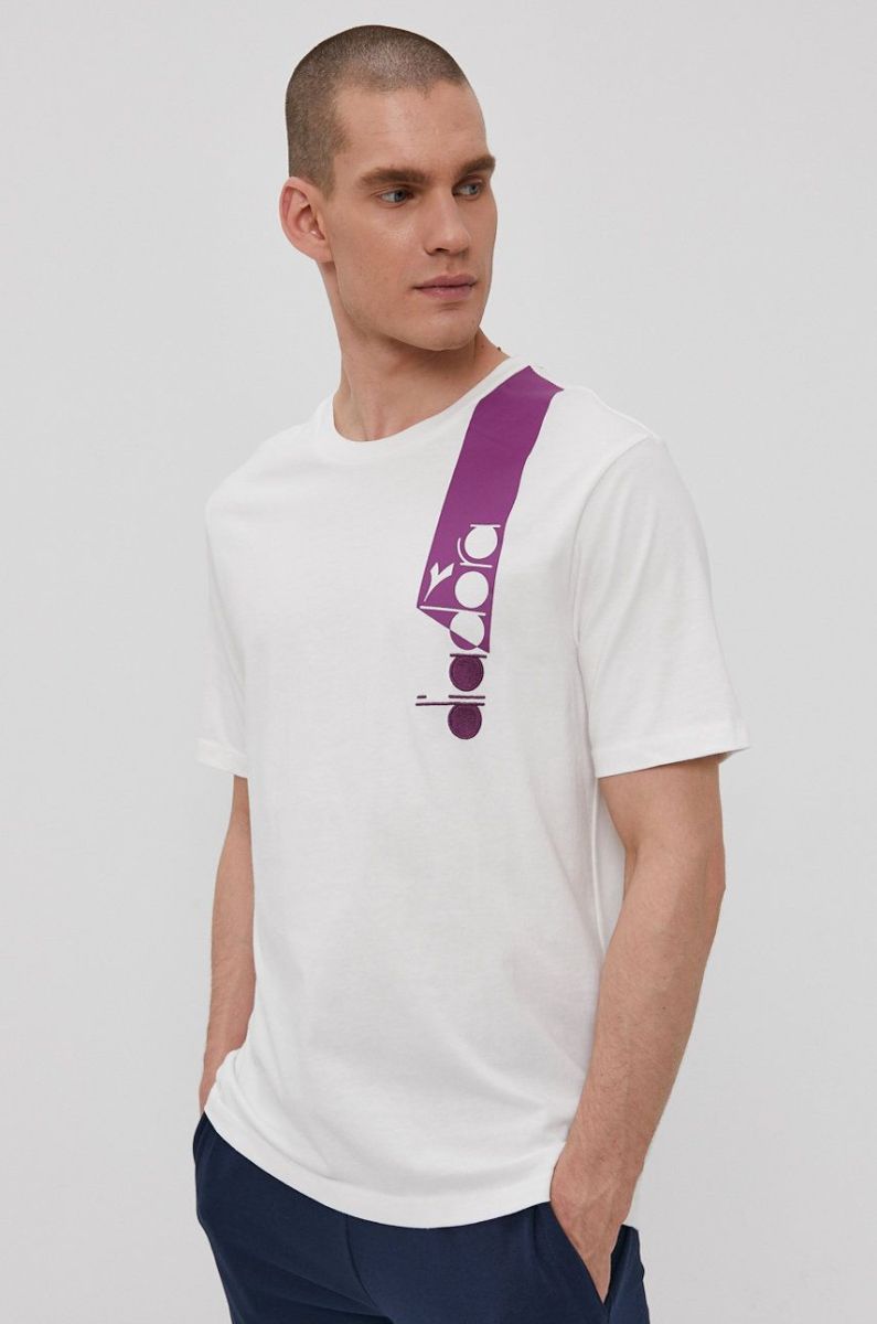 Бавовняна футболка Diadora колір білий з принтом