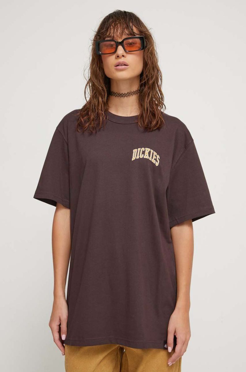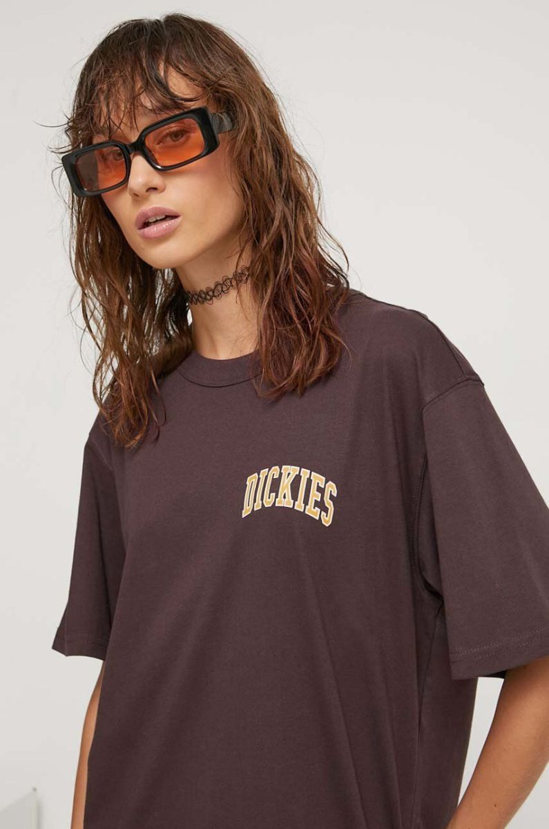 Бавовняна футболка Dickies колір коричневий з принтом