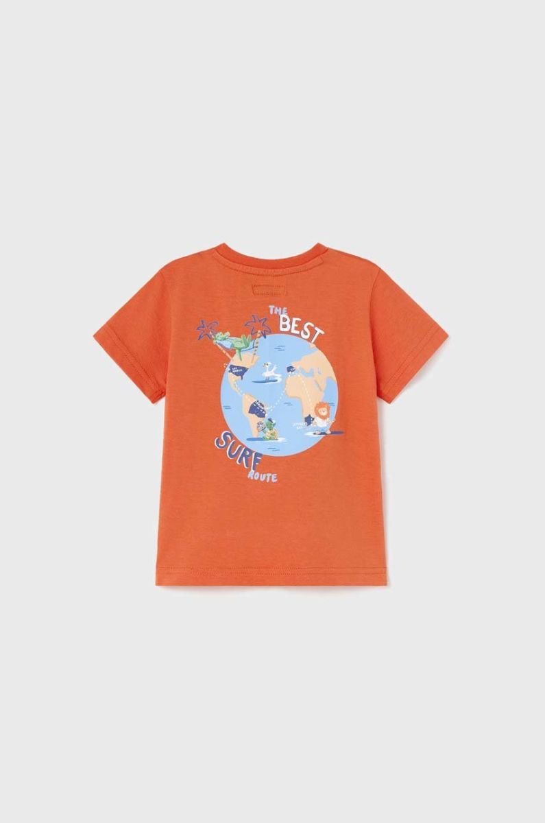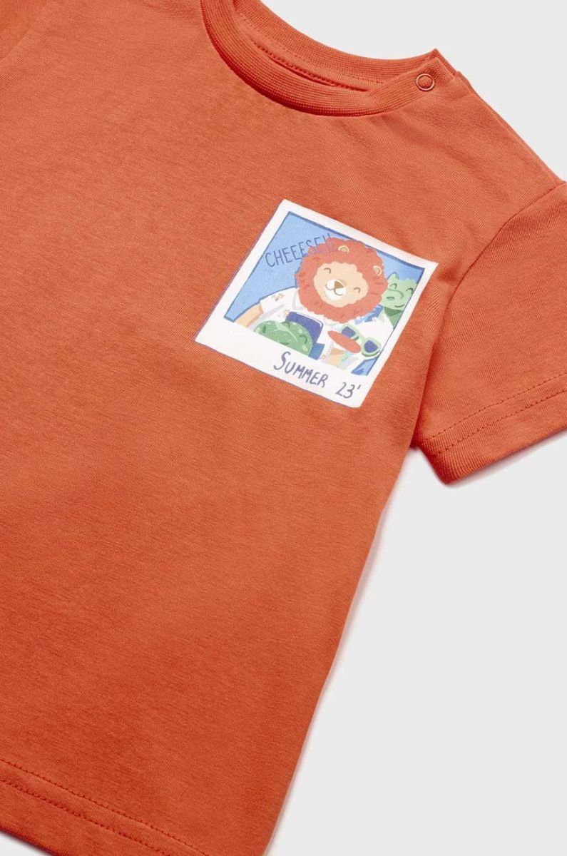 Бавовняна футболка для немовлят Mayoral колір помаранчевий з принтом