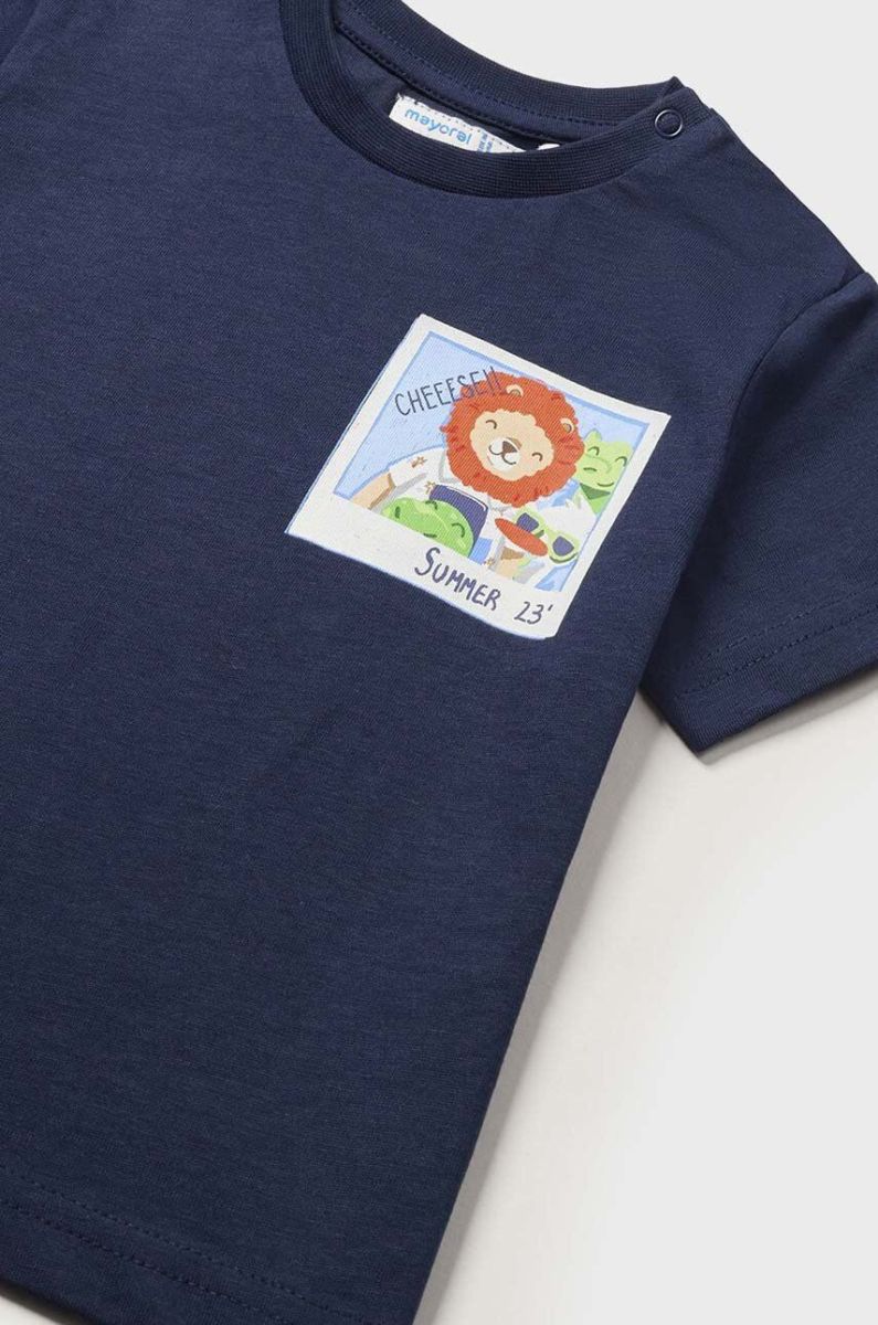 Бавовняна футболка для немовлят Mayoral колір синій з принтом (2936473)