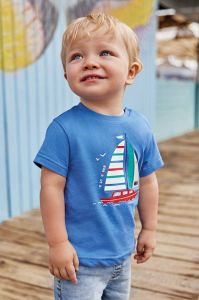 Бавовняна футболка для немовлят Mayoral з принтом колір блакитний (2940327)