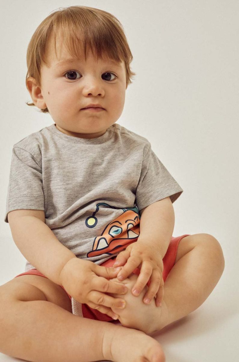 Бавовняна футболка для немовлят zippy колір сірий з принтом (3160073)