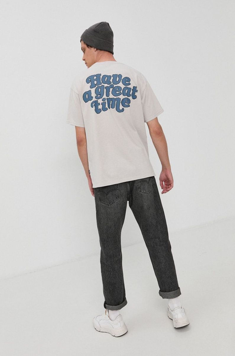 Бавовняна футболка Dr. Denim колір сірий з принтом