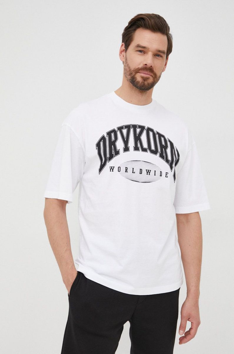 Бавовняна футболка Drykorn колір білий з принтом (2405519)